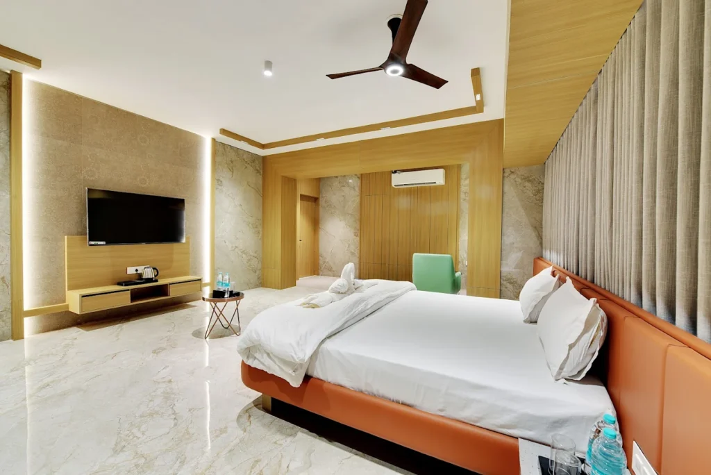 The heart of this accommodation lies in its well-proportioned rooms. Designed with modern sensibilities, each chamber is bathed in natural light and benefits from excellent cross-ventilation. The interiors are kept pristine, ensuring a hygienic and refreshing atmosphere for guests looking to unwind after a long day of travel or pilgrimage.